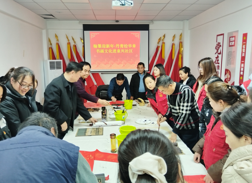 記者:張宗帥 為豐富群眾文化生活,營(yíng)造喜慶祥和的節(jié)日氛圍。12月25日下午,光明路街道人大工作室聯(lián)合市中區(qū)文聯(lián)、魯網(wǎng)棗莊、棗莊市企業(yè)發(fā)展研究會(huì)在泉興社區(qū)黨群服務(wù)中心舉辦“翰墨飄香 與民同行”“慶元旦、迎新年”書畫筆會(huì)活動(dòng);顒(dòng)旨在以書畫為媒,搭建藝術(shù)與群眾之間的橋梁,弘揚(yáng)中華優(yōu)秀傳統(tǒng)文化,增強(qiáng)社區(qū)凝聚力。
