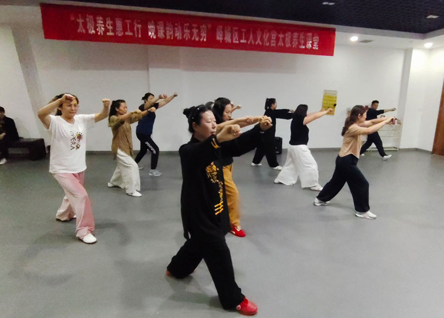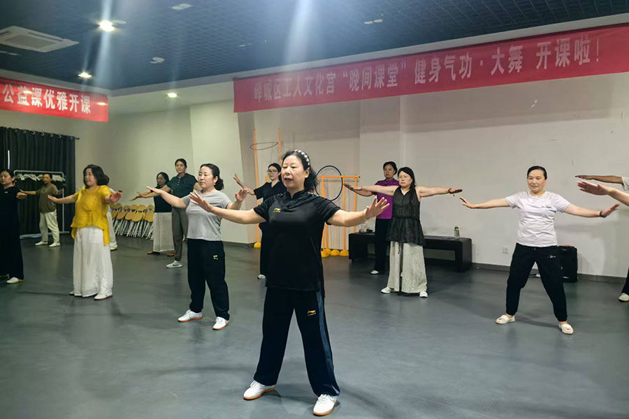 “獨(dú)樂(lè)樂(lè)不如眾樂(lè)樂(lè)”,王君芝深耕公益推廣。2013年?duì)款^成立嶧城區(qū)首個(gè)太極拳俱樂(lè)部,2022年協(xié)會(huì)成立后,帶領(lǐng)骨干將課堂搬進(jìn)社區(qū)、企業(yè)、養(yǎng)老院。她開(kāi)設(shè)線上公益直播,開(kāi)展“晚間課堂”八段錦教學(xué),讓零基礎(chǔ)群眾輕松入門(mén)。在她帶動(dòng)下,嶧城區(qū)太極類(lèi)項(xiàng)目蔚然成風(fēng),區(qū)老年體育組織屢獲省市賽事冠軍,成為當(dāng)?shù)伢w育名片。